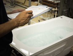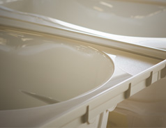 例えば1984年からご愛顧いただいている人造大理石バスタブ「エクラン」について、20年間実際のご家庭で使用した物を調査したところ、表面のツヤや透明感を維持し、キズが少なかったことがわかりました。
